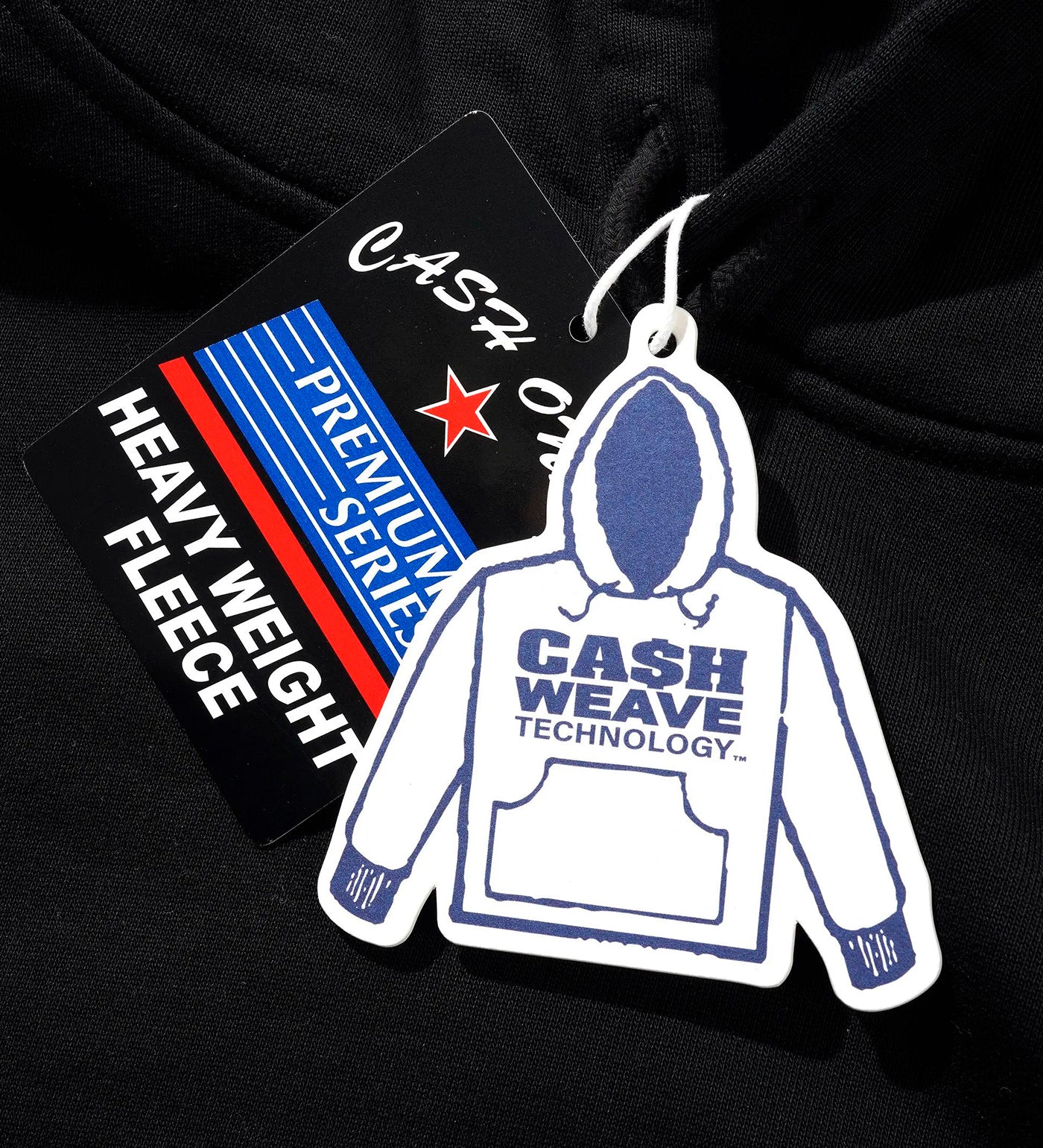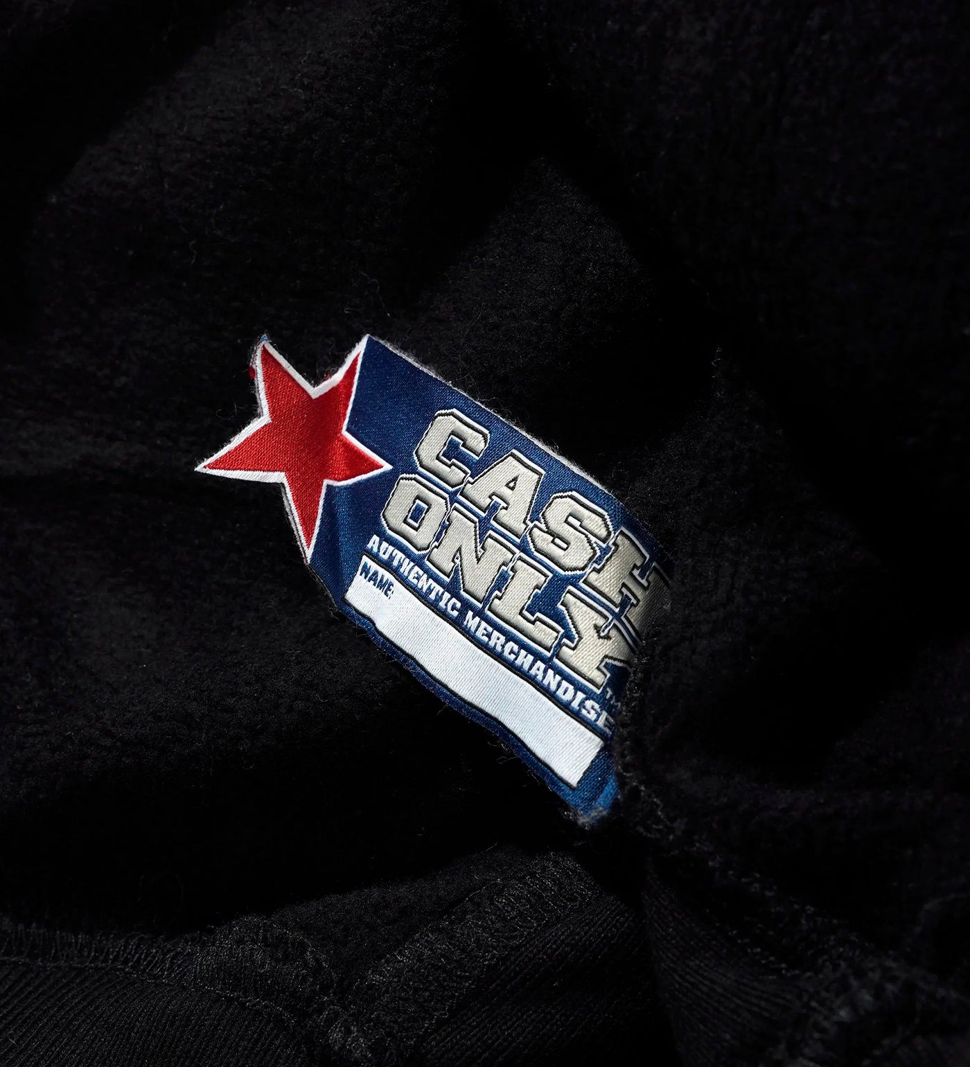 Woven label above hem